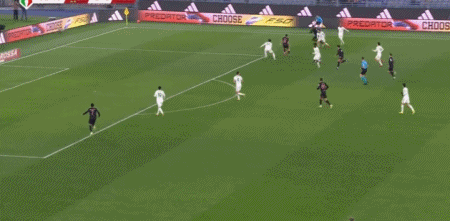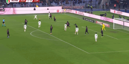 第52分钟,切-亚当斯接弗拉希奇传球完成梅开二度,都灵2-1罗马
